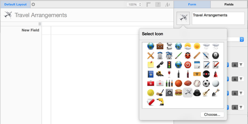 2. Select an icon for your form and give your form an appropriate name that represents the content you will be storing.